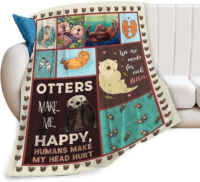 Sea Otter Blanket Otters Throw Blanket Comfy Plush Flannel Fleece Warm Soft Fluffy Fuzzy Stuff Blanket Gifts for Animals Lover Women Teens for Bed Sofa Couch 40"X50"