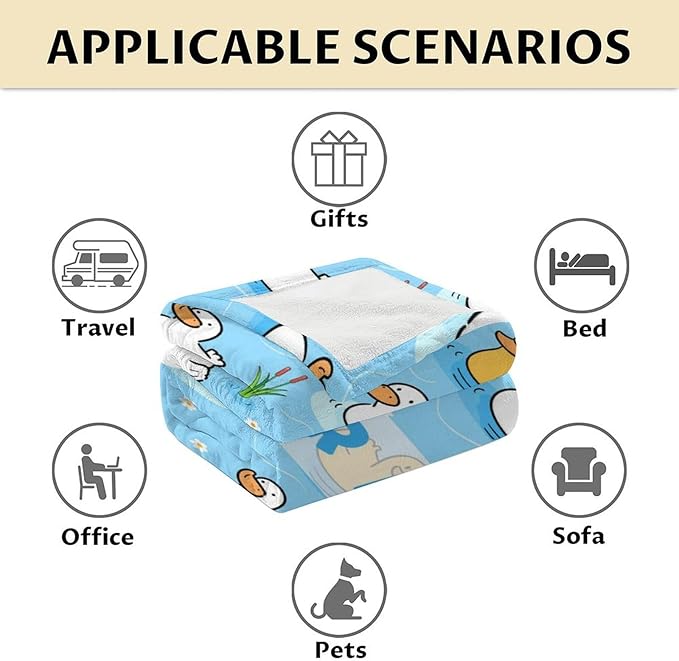 - Multifunctional Uses: This soft duck blanket is suitable for a variety of occasion, whether it is lying in bed to enjoy a leisurely afternoon, or taking the blanket to travel, or throwing it on the sofa to watch a movie or using it in the office, you will experience extra comfortability.