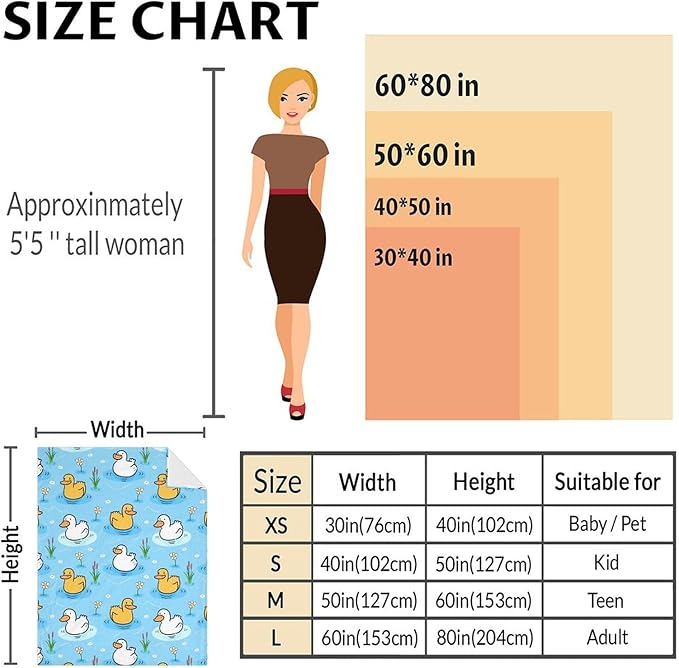 - Premium Flannel Fabric: Carefully selected flannel fabric ensures that the duck blanket is soft, comfortable and has excellent warmth retention. Our blankets can bring you warmth and give you a warm and comfortable experience.