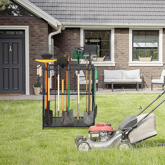 - 【PERFECT GARDEN TOOL ORGANIZER】 Azheruol garden tool storage rack has a large capacity to store brooms, shovels, mops, etc., including cleaning tools, garden tools, garden tools, agricultural tools, and lawn tools. Help store various tools in your garden, shed, garage, and backyard, making it easier for you to sort, organize, and access them.
