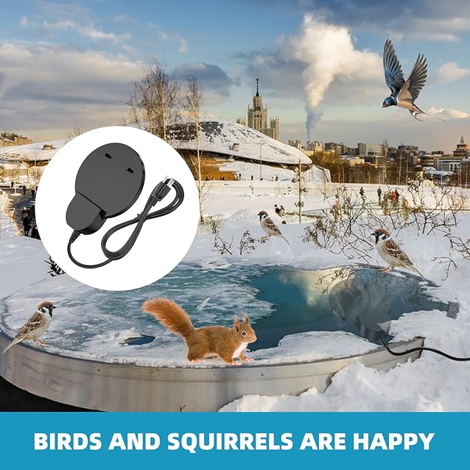- 【Versatile Applications】: Be it a bird bath in your backyard, a livestock trough on a farm, or a drinking facility for wild animals, our de-icer is widely applicable. As long as the container capacity is between 5 to 50 gallons, and it's made of plastic, stone, or metal, it can operate safely and effectively.