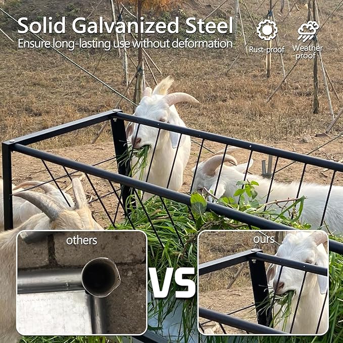 - Buit-to-Last Frame: Buyyah's black pasture feeder for livestocks is constructed of robust carbon steel, withstanding all-weather use for years to come.
