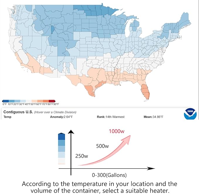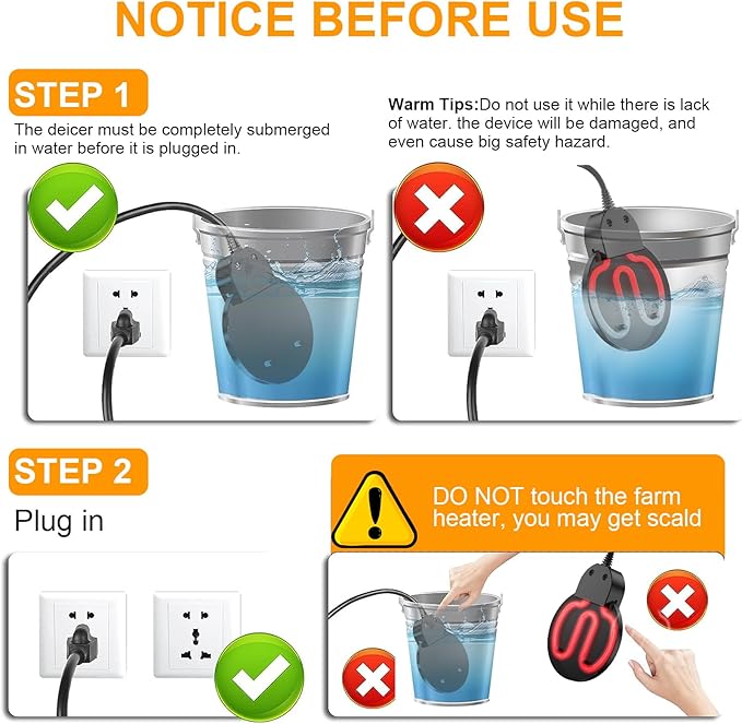 - ❄️【Auto-Thermostat for Consistent Fresh Water】Automatically activates below 42°F, preventing freezing in temperatures as low as 10°F. Provides fresh water for poultry, livestock, and wild birds in containers from 5 to 50 gallons.