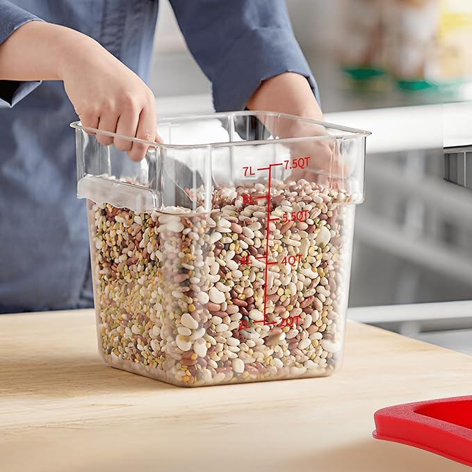 4 Pack Food Storage Containers, 8 Quart with Lids, Square Commercial Containers with Scale, NSF, Polycarbonate, Clear