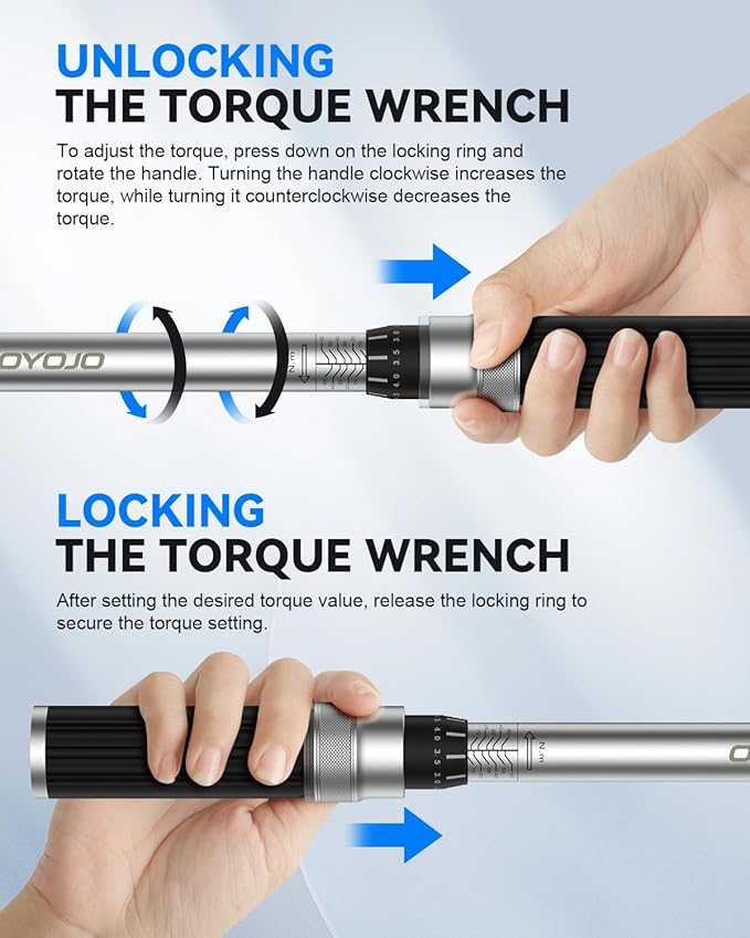- Precision Torque Range: Ideal for tasks requiring controlled torque, with a range of 2-24 N.m, perfect for automotive, cycling, and general DIY projects.