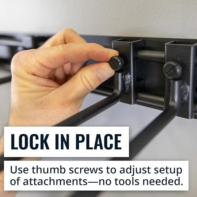 - INCLUDES 32" STORAGE RACK SYSTEM – Features modular wall hangers and wall shelves with expandable hooks that create a complete garage wall organizer. Dimensions: 32" wide with multiple tool storage organizer slots to secure yard tools, broom holder wall mount, and more.