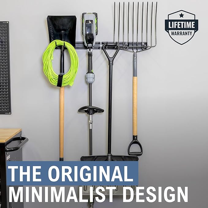 - HEAVY DUTY GARAGE TOOL ORGANIZER WALL MOUNT – This wall tool organizer is the ultimate storage solution for garage organization and storage, designed to hold garden tools, shovels, rakes, brooms, and more. Perfect for sheds & outdoor storage, utility rooms, and workshops.
