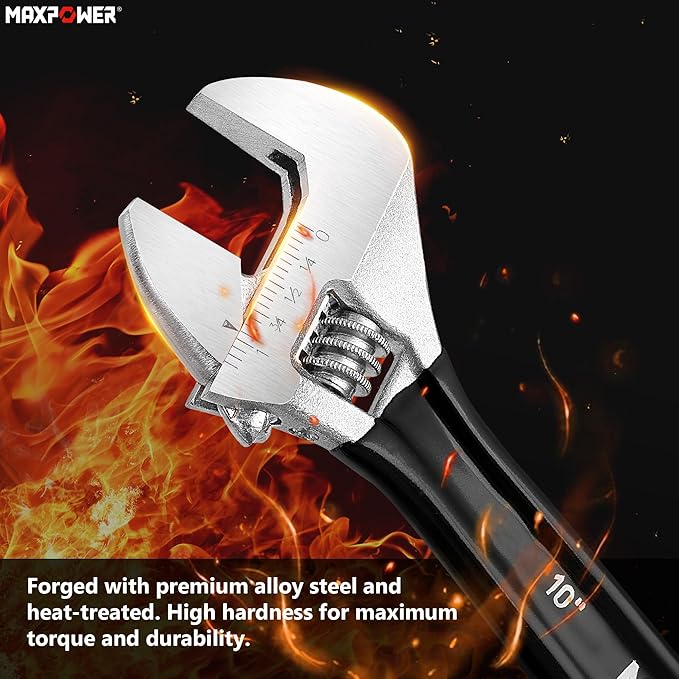 MAXPOWER Adjustable Wrench Set, 3-Piece Adjustable Wrenches 6-inch, 8-inch, 10-inch, Metric & SAE Scales, Extra-Wide Jaw and Soft Grip Wrench Set