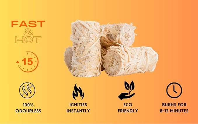 - NATURAL, CLEAN and ODOURLESS: Unlike traditional firelighters, these eco firelighters don't give off nasty odours. Specially formulated for a clean burn, these natural firelighters are perfect when cooking food and barbequing.