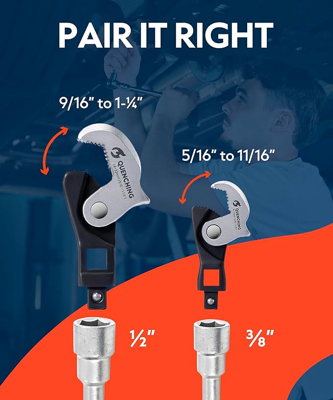 - Universal Drive Compatibility: Each wrench works with 1/4", 3/8", and 1/2" male and female square drives—so it fits seamlessly with your ratchets, extensions, or breaker bars.