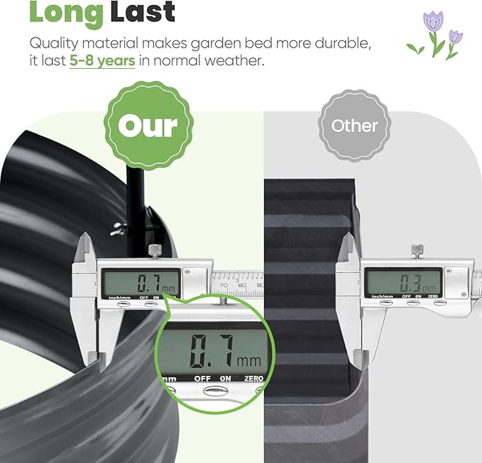 - 【Safe and Durable】 Our metal raised garden bed is made from galvanized steel, sturdy and built to last. The edges are meticulously crafted with a rolled edge process, eliminating sharp edges to ensure your hands stay safe from cuts during assembly and planting, letting you safely enjoy the pleasure of gardening.