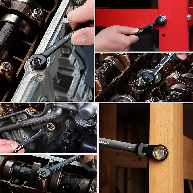 - 180° Pivoting Head: This wrench set features a 180° pivoting head, allowing maximum flexibility and ease of use in tight spaces. This design ensures you can reach even the most difficult angles with minimal effort