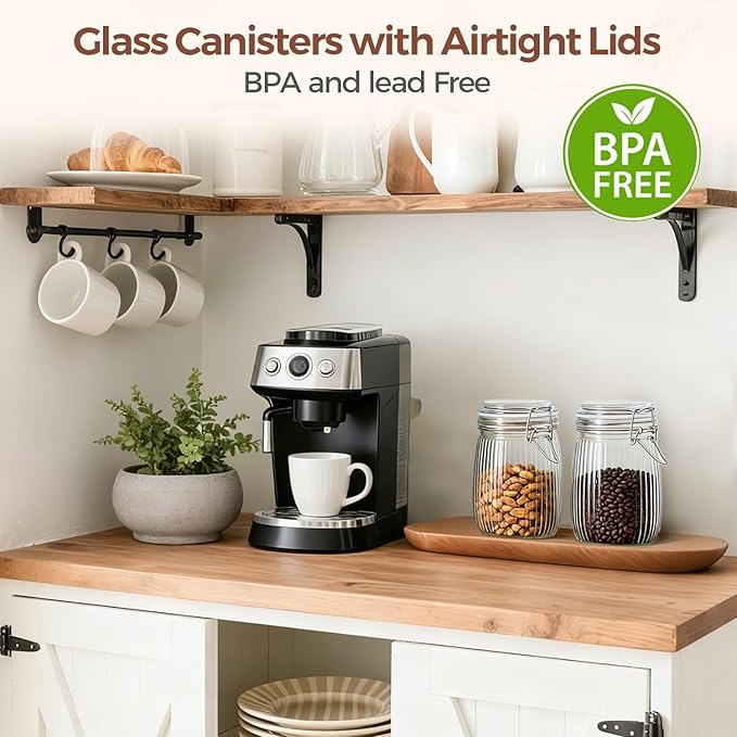 - Airtight Food Storage Jar: Glass jars with airtight lid is made of food-graded glass; Each glass container is well sealed, equipped with a silicone gasket and stainless iron locking clamp to make sure your food stay clean, fresh and safe while in storage