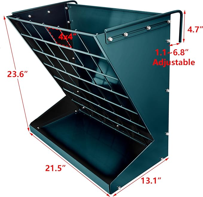 - [Double L-hook with Adjustable Distance] - The double L-shaped hook is convenient for installation, and the distance is adjustable, which can be installed in different sites. At the same time, the principle of the ground ensures that the hay is not affected by moisture and is not wasted