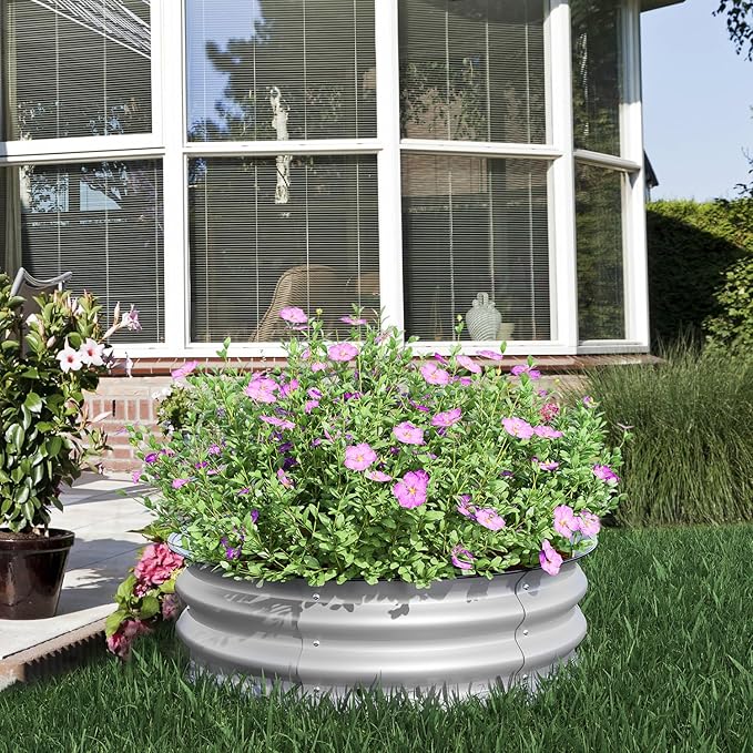 BPS Metal Raised Garden Bed, 2-Pack 2.5FT Diameter Galvanized Planter Raised Garden Boxes for Flower Planters, Vegetables Herb
