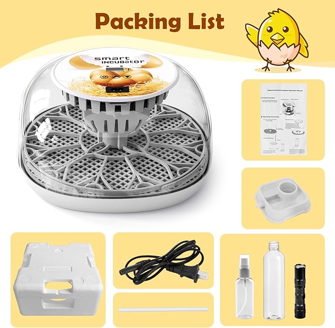 - 🥚🐣【Worry-Free Purchase】-- Our egg incubator set includes incubator, water bottle, spray bottle, foam box, egg candler, power cord, user manual. 🎁🎁Supporting 90-day returns & exchanges, 36-month warranty, 24-hour quick response and technical support, we are committed to providing high-quality products and high standards of customer service so that you can purchase without any worries. You can fully experience the joy of giving birth to a new life.