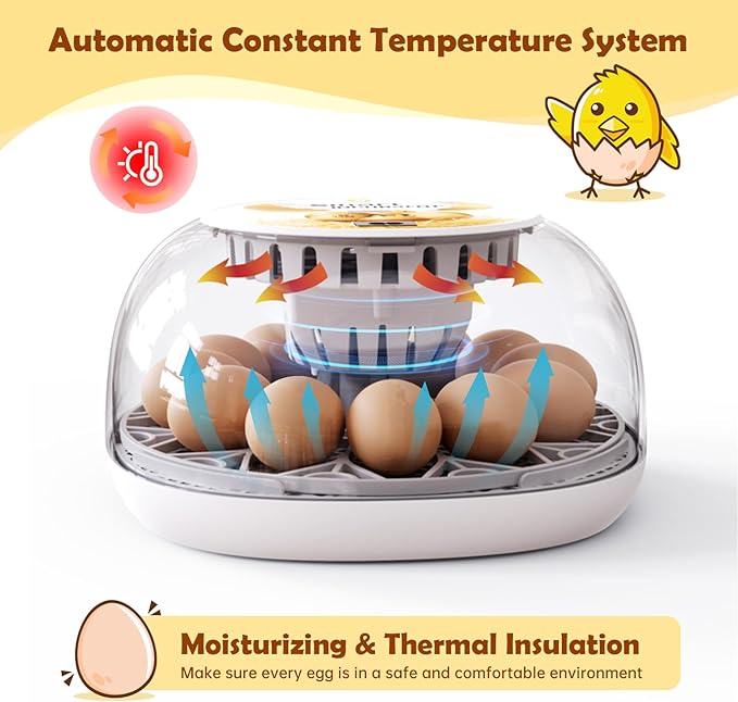 Egg Incubator for Hatching Chicks, Automatic Egg Turner Holds 12 Eggs, Smart Incubator 360° Clear Window with Temperature Display Egg Candler for Small Poultry Chickens Ducks Quails Eggs