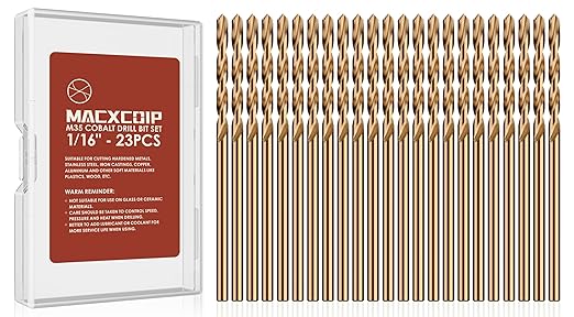 1/16" (23pcs) Cobalt Drill Bit Set, M35 High Speed Steel Jobber Length Drill Bit Kit for Hardened Metal, Stainless Steel, Cast Iron, Wood and Plastic, with Storage Case