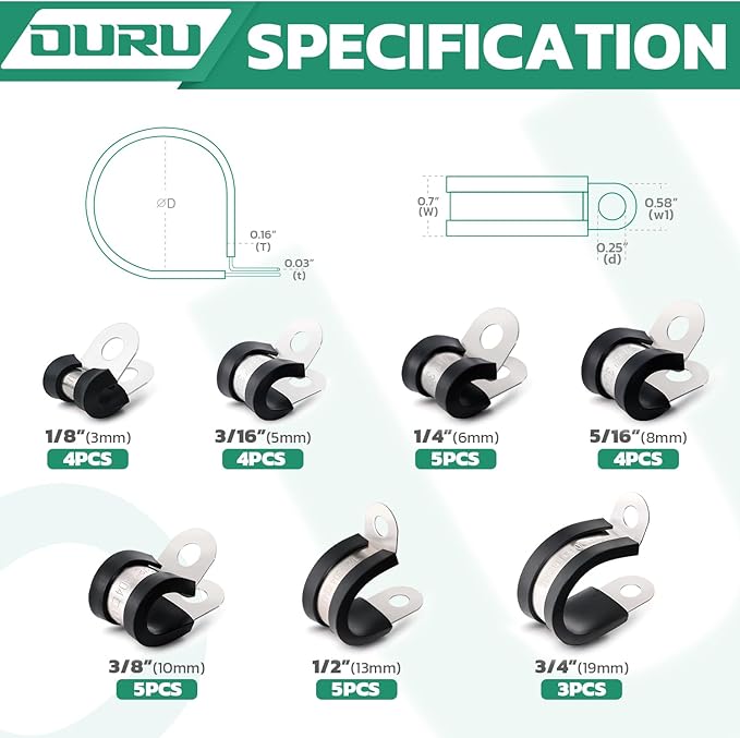 - Ideal for Application-The marine grade rubber p clamp.Used in automotive,industry,boat,outdoor,home decoration,DIY,RVs and any place where vibration may occur.Such as wires,cables,pipes,line management and repair