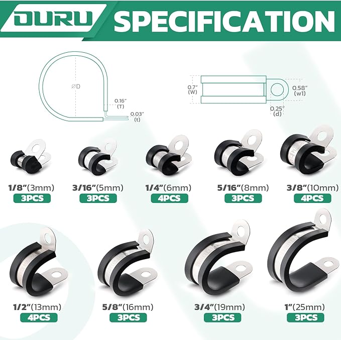 - Ideal for Application-The marine grade rubber p clamp.Used in automotive,industry,boat,outdoor,home decoration,DIY,RVs and any place where vibration may occur.Such as wires,cables,pipes,line management and repair