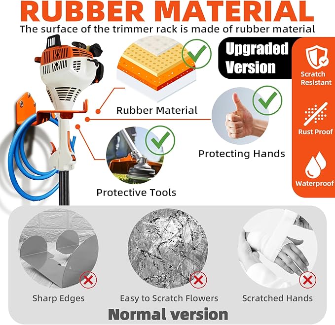 - Premium Materials: The trimmer rack is built from strong gauge steel, which is stronger and has high bearing capacity. The rack surface with orange ruber. Water-repellent and anti-rust, resistance to chipping and cracking.