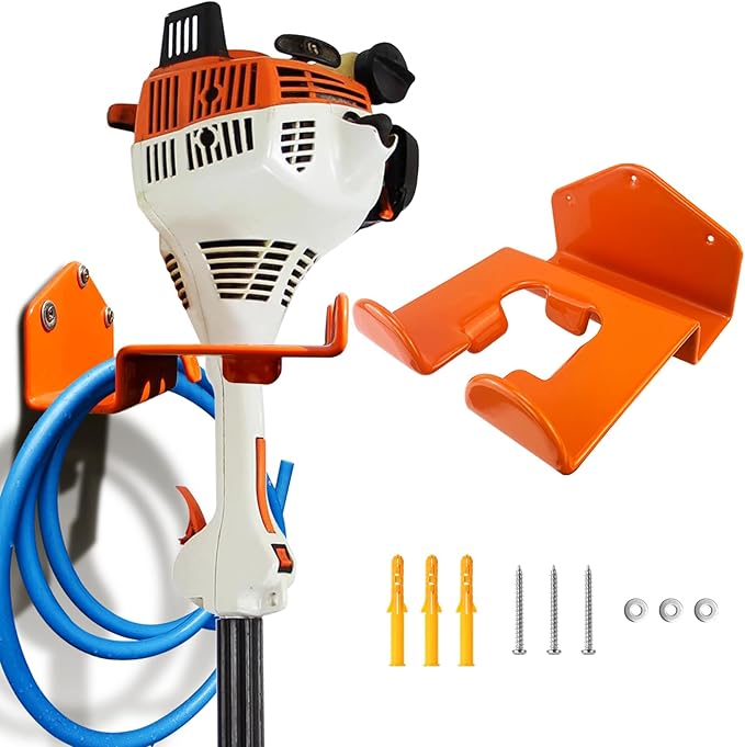 - Tool Holder for Multiuse: Heavy Duty Hangers Wall Mounted Grass Trimmer Rack sturdy and stand wear and tear,This is an excellent garage storage solutions,Install it,it can hold up to various tools in your garage or yard. Like garden power tool and hedge trimmer.