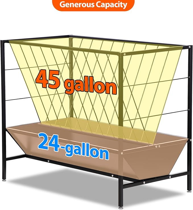 - Generous Capacity: Our pasture feeder boasts a 24 gallon feed pan at the bottom, ensuring your animals have constant access to nutrition; the top grass rack provides an additional 45 gallon of space for forage, allowing your livestock to graze freely; it's large enough to accommodate the needs of your animals while remaining easy to manage