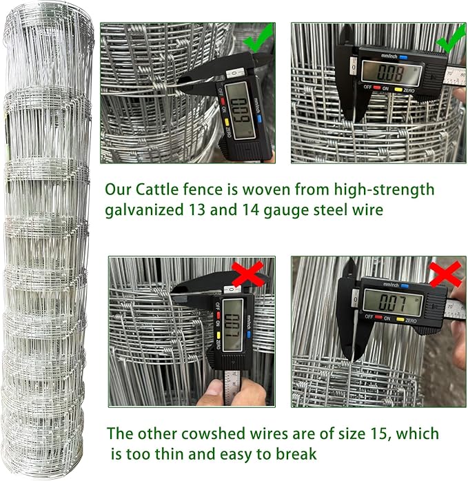 - Easy To Install And Maintain: The installation and maintenance of the cattle fence are relatively simple, and it can be disassembled and moved as needed, which is convenient for the management and operation of animal husbandry. Ideal for protecting/ securing livestock, poultry, pets, garden & boundaries