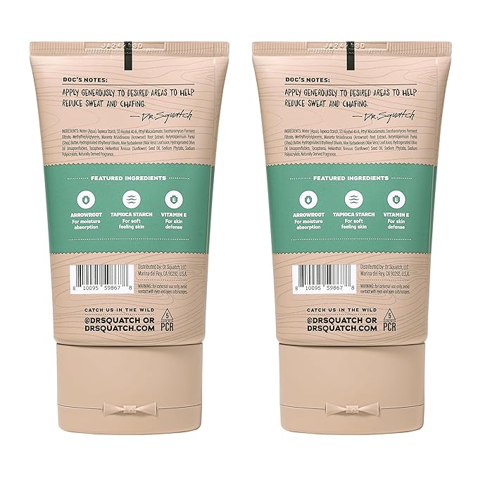 Dr. Squatch Whole Body Deodorant for Men - Odor + Sweat Control - Aluminum + Talc Free - Natural Ingredients - Dermatologist-Tested for All Skin Types - Rainforest Rapids (3.4 fl oz, 2-Pack)