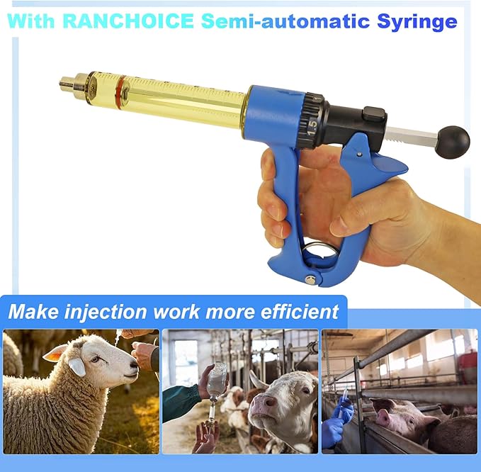 25ML Semi-automatic Livestock Syringe, Adjustable Continuous Repeating Cattle Vaccine Luer Lock Syringe for Cow Goat Sheep Pig