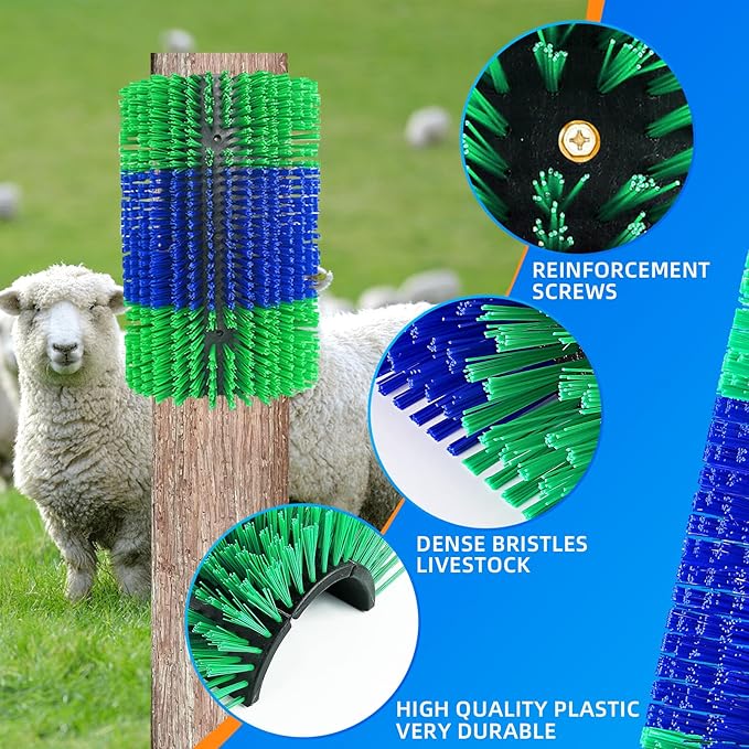 - 【Upgraded Design for Versatility】Our improved livestock scratch brush features an upgraded back-plate that can be flexibly bent around tree stumps or fence posts. It can also be securely nailed onto fences or walls to protect valuable infrastructure from livestock rubbing