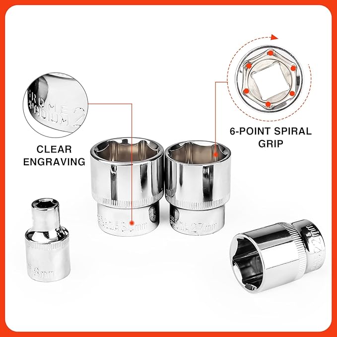 - High-quality and Durable: Our reversible drive sockets set are crafted from premium chrome-vanadium steel, featuring a sleek chrome-plated mirror finish that delivers exceptional strength and outstanding durability