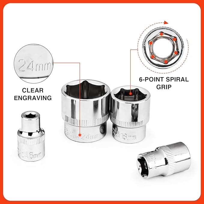 - High-quality and Durable: Our reversible drive sockets set are crafted from premium chrome-vanadium steel, featuring a sleek chrome-plated mirror finish that delivers exceptional strength and outstanding durability