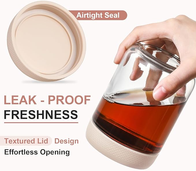 NETANY 6-pack 16oz Glass jars with Airtight Lids, Overnight Oats Containers with Lids, Wide mouth Mason Salad jars, Glass Food Storage Containers for Snacks Yogurt Spice Sugar-Beige