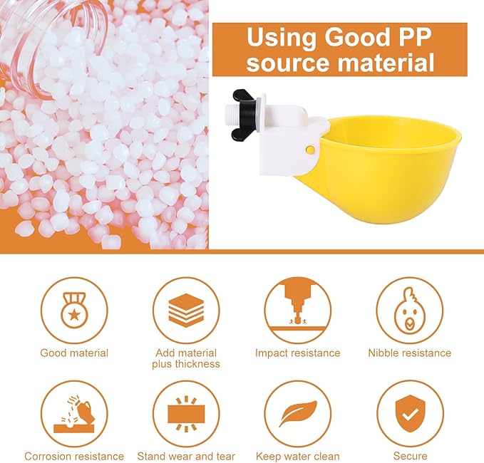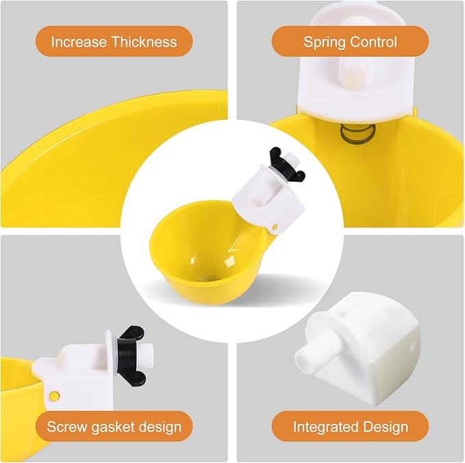 - Package Includes Chicken Waterers and Support: Your purchase includes 8 chicken waterers (specifically chicken waterer cups) and individually packaged drill bits. We stand behind our poultry waterer products—contact us with any issues, and we’ll respond within 24 hours to ensure your satisfaction with this chicken water system
