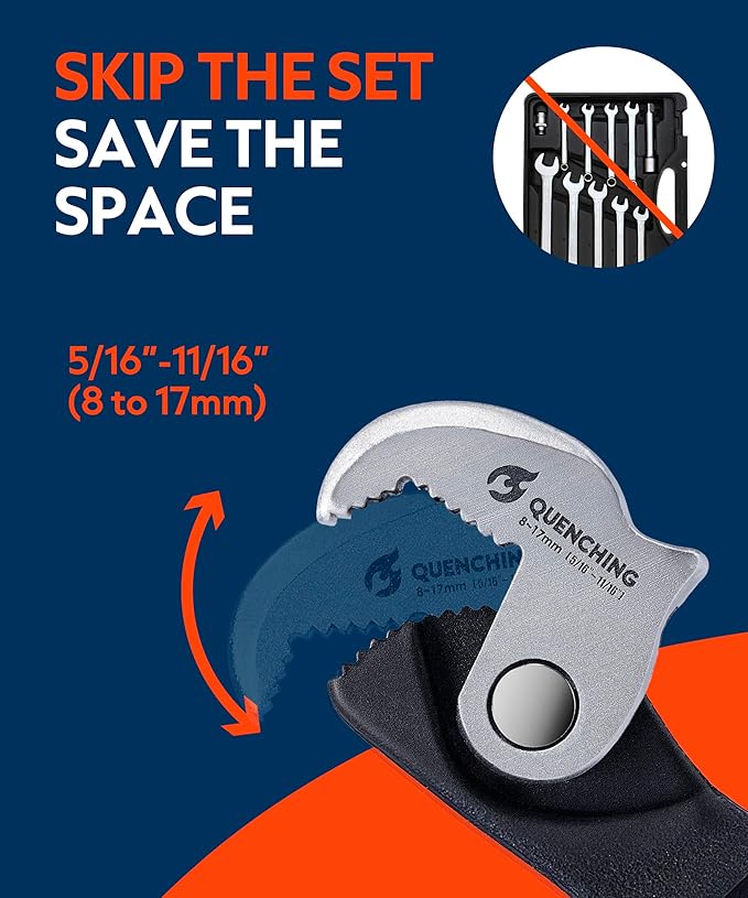 Self Adjusting Crowfoot Wrench, 7.5" Auto Jaw 5/16" to 11/16", 8 to 17 mm, Rust Resistant & Power Grip, Space-Saving Alternative to Wrench Sets for Car and Home Repairs