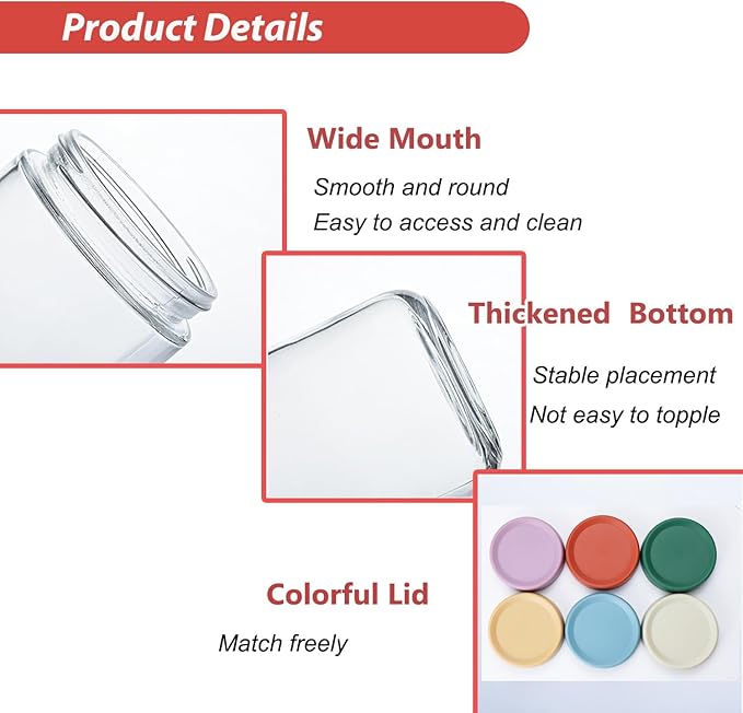 - 【Airtight Seal】: Our glass jars with airtight lid keep the contents fresh for a long time, preventing any possible leaks. Whether you use them as overnight oats containers with lids or yogurt containers with lids, the specially designed lid will give you a hassle-free transport experience.