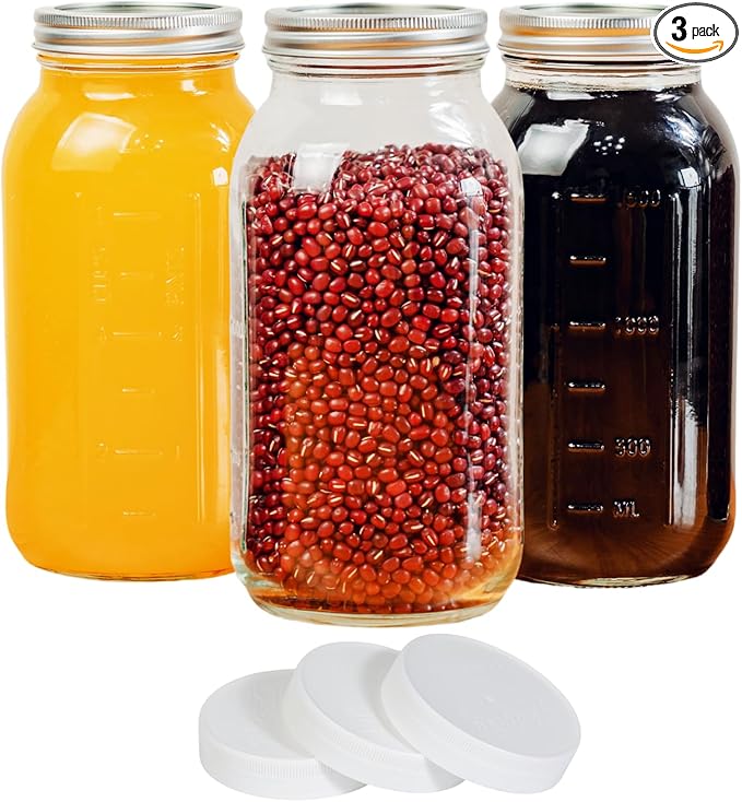 - Smart Design for Convenience – Measurement markings eliminate guesswork; Plastic lids create airtight storage while canning lids ensure proper preservation; Large capacity reduces frequent refills