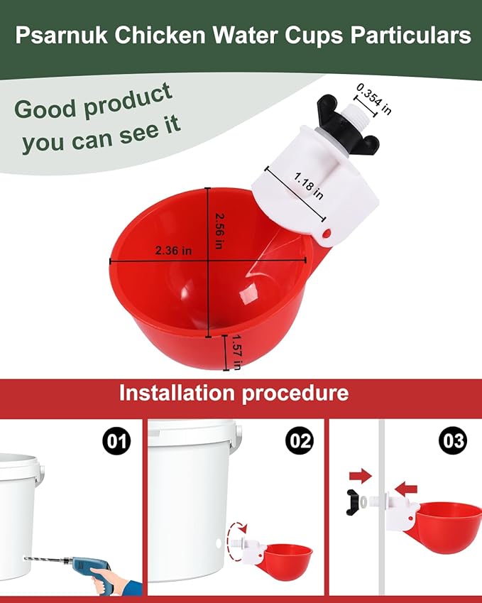 - 【What You Get】You will receive 8 chicken waterer cups, 4 chicken feeder, a drill bit for the chicken waterer cups, a hole opener for the chicken feeder, and manuals. Thank you sincerely for your choice. We are deeply concerned about your purchase satisfaction. If you have any questions during use, please contact us at any time. We guarantee to reply within 24 hours and provide a satisfactory solution