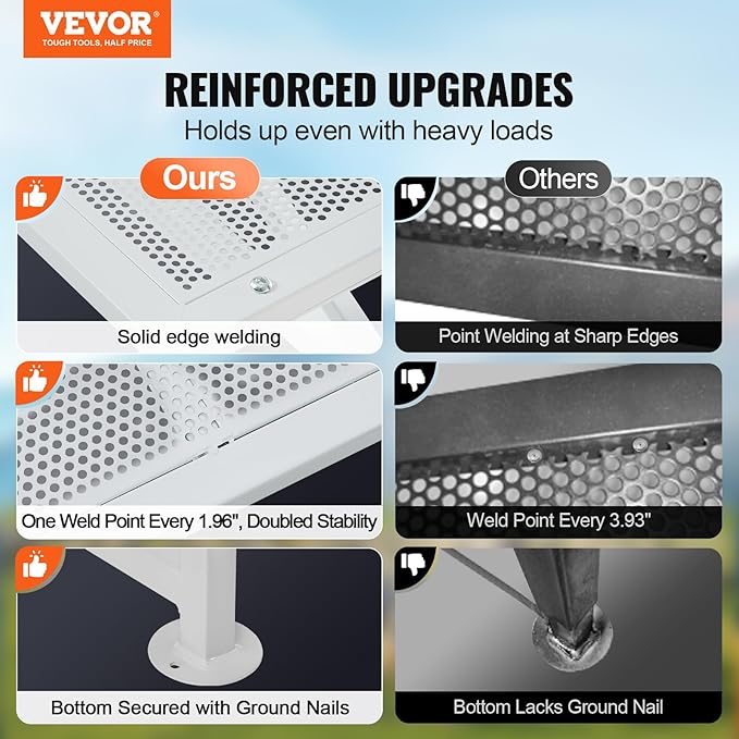 - 1. **✔ 🐐 Sturdy Goat Trimming Stand**: Crafted from durable iron pipes coated with rust-proof spray paint, our goat trimming stand features a spacious 47x23 inch tabletop. It supports animals of various sizes with a 4-level height adjustment system (21" to 33"), secured by a robust pin-lock system and adjustment knob.