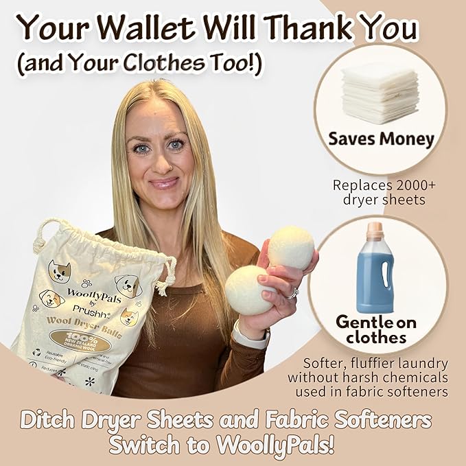 - 🐾 SOFTENS & REDUCES STATIC: WoollyPals dryer wool balls naturally soften clothes and reduce static cling without the use of harsh chemicals. Suitable for all laundry types, these wool dryer balls laundry reusable are help achieve soft, static-free clothing