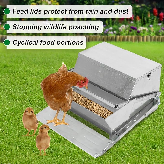 - EASY TRANSFER: Square box design, 15lb weight, you can easily pick up and put it where you want,treadle feeder can prevent rats,birds from eating the food