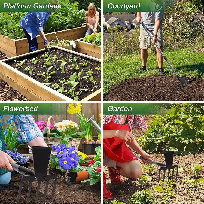 - 2 in 1 Garden Hoe:Walensee 2-in-1 Garden Hoe Cultivator with 5-Tine Rake is a versatile gardening essential that revolutionizes your outdoor chores. Its widened hoe and five tines design vastly extends your working reach, streamlining tasks and significantly reducing the time spent on gardening, landscaping, weeding, digging, seeding, soil loosening, vegetable cultivation and weed eradication. Experience the ultimate in gardening convenience and efficiency with this must-have tool.