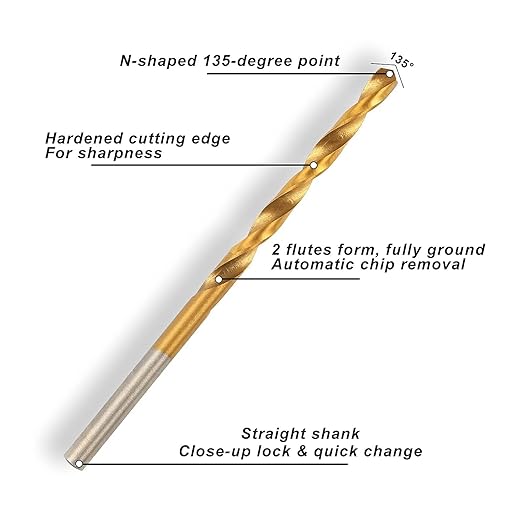 - 【PRECISE 135° POINT TIP】 Compared with 118-degree bit, 135-degree bit makes it easier to drill repeated holes into harder material. The 118-degree bit cuts more aggressively but the steeper cutting angle will cause it to dull more quickly.