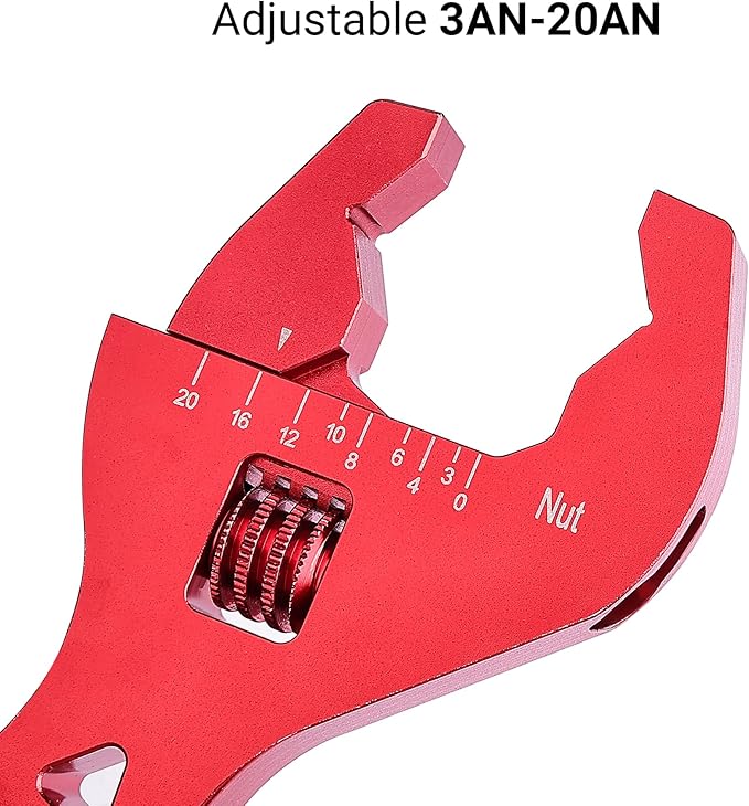 - Adjustable Range: This adjustable AN fitting wrench combines multiple sizes in one tool. It can be adjusted to fit 3AN, 4AN, 6AN, 8AN, 10AN, 12AN, 14AN, 16AN and 20AN fittings.