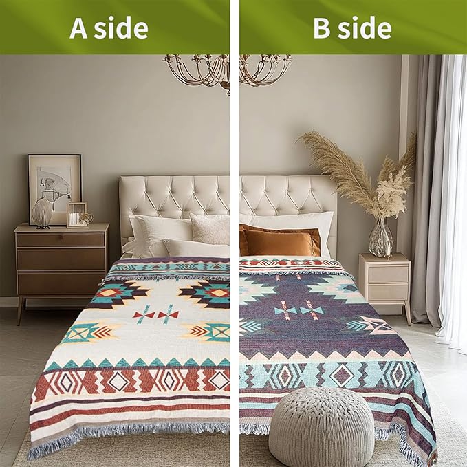 - 【Multi-purpose Blanket】 --This western home decor blanket is a must-have accessory for any home. Whether you need a cozy blanket for chilly nights, a throw for your sofa, a picnic blanket for outdoor, or a decorative for your bed, this multi-purpose native american blanket has you covered. Its soft and sturdy fabric ensures comfort and warmth, while its timeless design adds a touch of elegance to any space. This boho aztec blankets is a practical and stylish addition to your home decor arsenal.
