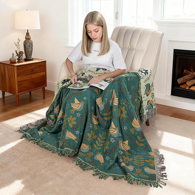 - 【Unique and Colorful Design】 -- Woven blanket with an array of colors to form exquisite patterns of bird and floral pattern. Each detail comes together, evoking a sense of whimsy and free-spirited charm typical of the Bohemian aesthetic. The vintage throw blanket with fringe design adds a playful and stylish touch. The cascading tassels create a sense of movement and texture, enhancing the overall personality of the blanket. Making it a unique and eye-catching addition to any space.