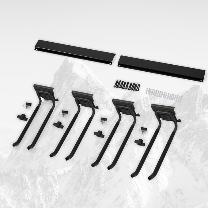 - ADJUSTABLE VERSATILE STORAGE: With a clamping screw, the hooks adjust along the wall track, accommodating various tool sizes. This garage storage system is ideal for organizing shovels, rakes, brooms, and more, making it a perfect yard tool organizer for garage.