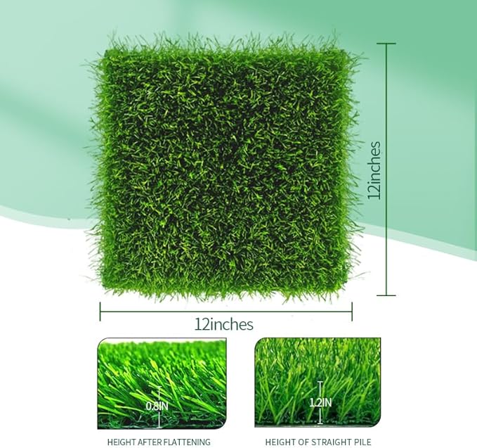 - 6 PACK NESTING BOX PADS: 6 Pack of chicken nesting pads were included in the package. Each nesting pad is approximately 12" x 12”(you might find it 1" longer than the description, please trim it according to your needs), grass height is about 1.2". Tests in our laboratory shows that this is the most popular size and thickness for chicken nesting