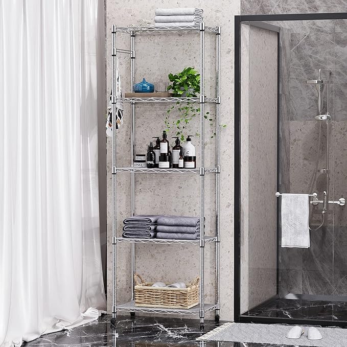 - 【Premium Corrosion-Resistant】5 Tier storage shelf is made of sturdy carbon steel, equipping with an advanced powder coating process, the shelf is rust resistant and oxidation resistant.Enables you to use it longer